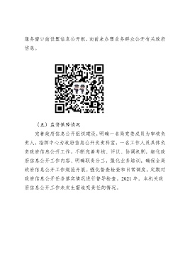 服务窗口前设置信息公开板,向前来办理业务群众公开有关政府 信息。 (五)监督保障情况 完善政府信息公开组织建设,明确一名局党委成员为审核负 责人,指挥中心为政府信息公开负责科室,一名工作人员具体负 责政府信息公开工作。不断完善考核、评议、协调机制,细化政 府信息公开工作内容、明确职责分工,强化业务培训,确保全局 政府信息公开工作规范开展。强化督查检查和日常调度,定期对 政府信息公开任务落实情况进行督导检查。2021 年,本机关政 府信息公开工作未发生需追究责任的情况。