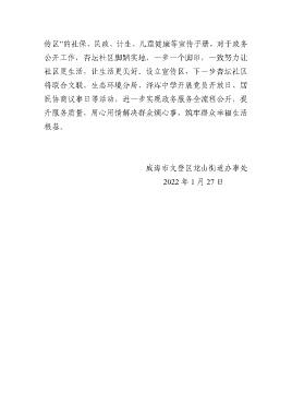传区”的社保、民政、计生、儿童健康等宣传手册,对于政务 公开工作,杏坛社区脚踏实地,一步一个脚印,一致努力让 社区更生活,让生活更美好。设立宣传区,下一步杏坛社区 将联合文联,生态环境分局、泽库中学开展党员开放日、居 民协商议事日等活动,进一步实现政务服务全流程公开,提 升服务质量,用心用情解决群众烦心事,筑牢群众幸福生活 根基。 威海市文登区龙山街道办事处 2022 年 1 月 27 日