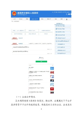 (一)主动公开情况 区水利局按照《条例》的规定,除法律、法规规定不予公开 及涉密等不予公开的政府信息,均能及时主动向公众、企业及社 2