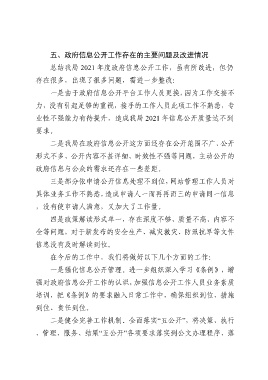 总结我局 2021 年度政府信息公开工作,虽有所改进,但仍
